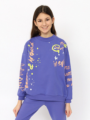 Джемпер с длинными рукавами и притачным поясом. Рукава втачные с манжетами по низу. Воротник, манжеты и пояс выполнены из полотна с эластаном. Перед и спинка декорированы принтом "Оставайся хладнокровным, следуй своим собственным правилам".