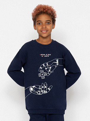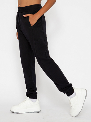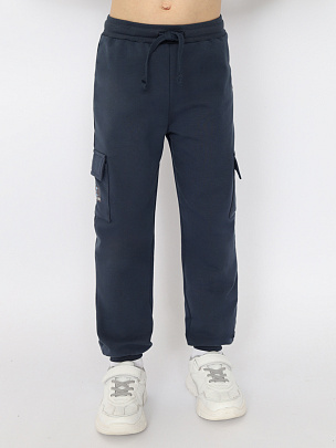 Брюки для мальчика с карманами. Пояс притачной, с резинкой и функциональным шнуром. Нижние срезы брюк на резинке. В области левого кармана небольшой принт "СПОРТИВНАЯ КОМАНДА"с эффектом высокой базы. Правая половинка брюк декорирована принтом.