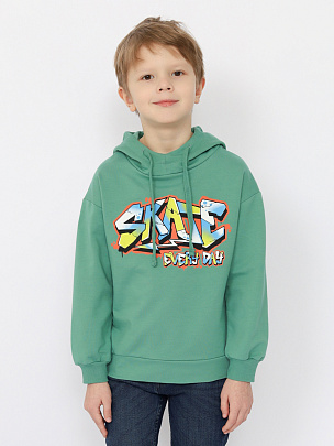 Джемпер мужской прямого силуэта. Круглая горловина обработана узкой притачной обтачкой из рибаны с эластаном. Рукав декорирован принтом.