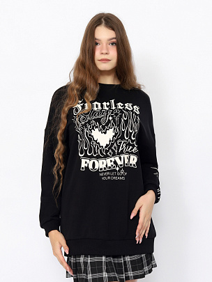 Молодежная толстовка oversize c длинными рукавами и креативным принтом спереди и на рукаве (всегда оставайся верной и бесстрашной).